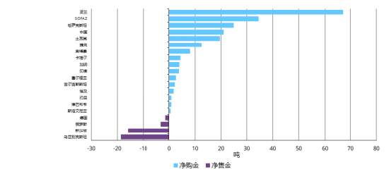 各经济体央行年初至今净购金/售金量(吨)[2]