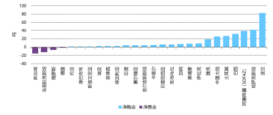 各央行年初至今净购金/售金量(吨)2