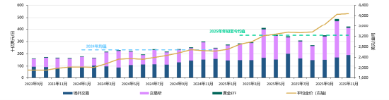 11月,全球黄金市场交易量有所回落,日均交易额降至4,170亿美元,较10月创下的历史记录下降26%[5],但仍远高于2024年2,320亿美元日均水平。
