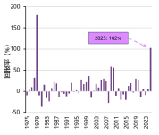 *基于1975年至2025年间的数据。由于数据可得性限制,1975年至1995年的回报率基于标普高盛贵金属指数(仅包含黄金与白银)计算,而1996年至2025年的回报率则采用标普高盛贵金属、铂金及钯金等权重指数进行测算。