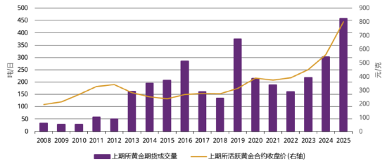 2025年,度黄金期货日均交易量攀升至457吨,同比大幅增长52%,创历史新高。