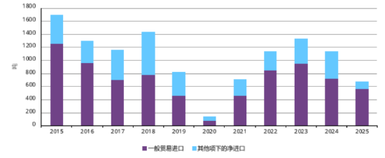 2025 年黄金进口明显回落