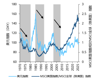 l 以往的美元熊市阶段也往往伴随着股市的相对走弱,且汇率初期跌幅通常较为剧烈,这可能与投资者资金外流形成的相互强化效应有关