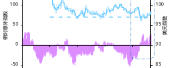 美元指数(DXY)与美国相对股票表现5