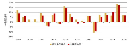 以美元计价的国际金价及以人民币计价的国内基准金价,一季度均上涨7%。