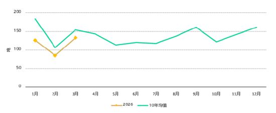 l 我们认为,金价回调亦促使市场出现逢低补库行为,或在一定程度上支撑了同比增长:去年3月金价大幅上涨,抑制了金饰商的补库意愿。尽管如此,3月上游实物黄金需求仍低于十年均值,凸显金饰行业的持续疲软态势