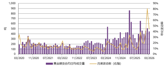 上海期货交易所黄金期货日均交易量与月度金价波动率*4