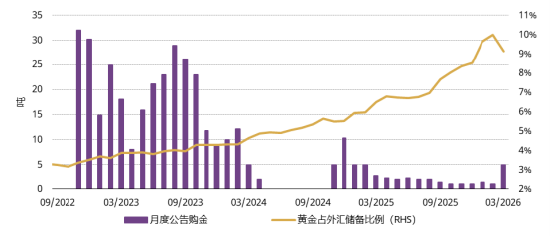 [5]数据截至2026年3月。来源:国家外汇管理局,世界黄金协会