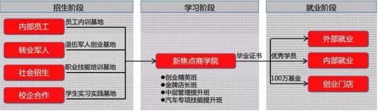 新焦点商学院是汽车后市场人才培养基地,旨在满足创业计划及汽车后市场高素质人才需求;学院于2015年1月23日正式挂牌成立;学院成立创业基金专户,初始启动创业资金100万元;集合众多顶尖的行业研究导师、行业标志性企业领导者以及实战经验丰富的终端精英;学院拥有十多家标杆终端门店作为实习实训基地。