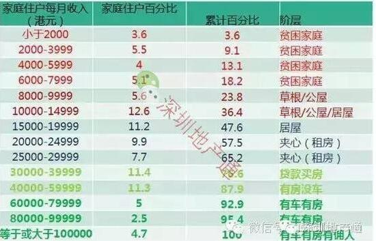 收入情况:人均月收入的中位数约为15000港元