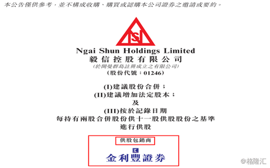 值得关注的是,在毅信控股这次的供股动作之中,是金利丰证券作为包销商。
