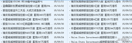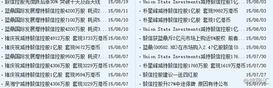 而翻看有关于该股的往期新闻,出现最多的新闻是该公司的大股东如褚庆祝、朴星峰等在近一年来相继频频减持公司股份套现的新闻,每次套现金额少则数百万,多则上千万港币,年内减持次数总共多达几十次。此外,还有蓝鼎国际发展、union State Inverstments等机构的进出的身影。