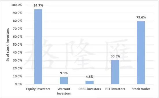 一个成熟的金融市场绝对不是只有股票,投资者可以选择股票,也可以选择各种衍生品。不仅如此,香港投资者还可以投资海外。如图所示,2014年有3.3%的香港投资者投资海外。