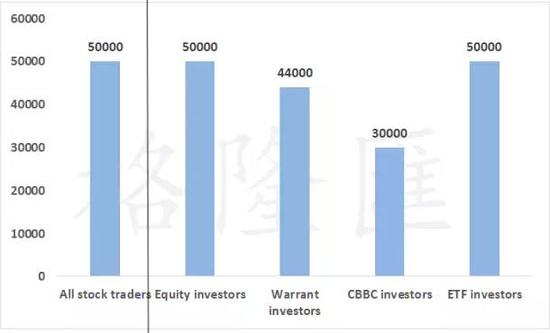 再看看交易金额,虽然认证股权、CBBC的投资占比很低,但是他们的交易金额可不低,股票占了那么大份额,交易金额也只能跟ETF扯个平、略微高于认证股权、打个6折卖CBBC。
