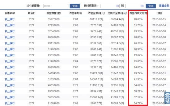 2、内银港股是重灾区。农业银行每天成交量有30%是沽空的。