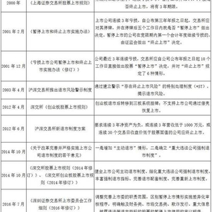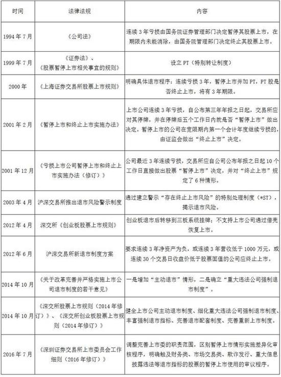 A股市场退市制度,有一个相对比较清晰的发展过程。请看下表: