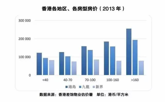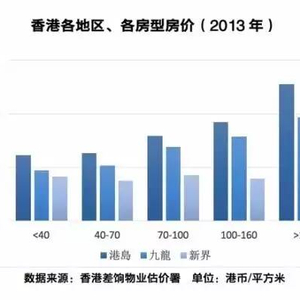 香港楼价数十年来都保持着较高水平。据香港差饷物业估价署统计,港岛套内160平方米以上的房型,单位房价超过25万港币,这意味着每套E型住宅至少需要4000万港币。即使在房价水平最低的新界买一套40平方米的小户型住宅,也需要332万港币,2013年香港全行业工资中位数是14100港币(香港政府统计处统计),相当于其19.6年的收入。