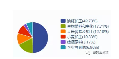中国粮油控股集中于粮油价值链的加工环节及相关的贸易业务,主要从事油籽加工、生物燃料和生化、大米贸易及加工、啤酒原料和小麦加工,2015年收入结构如下: