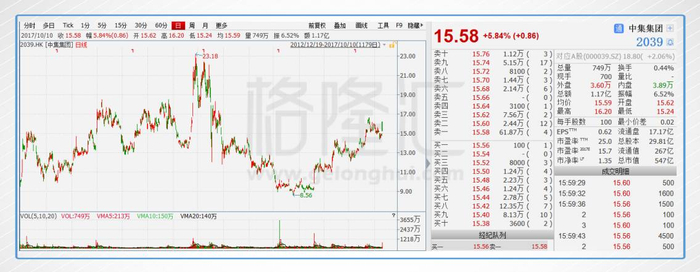 招商局集团、中集集团、西部物流,共占前海片区用地的32%。本来应该风生水起,但15年却正值航运由盛转衰的一年,伴随着大牛市,中集集团从15年3月的低点一路上涨到历史最高的23.18港元,涨幅超过50%。