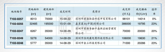 根据深圳前海管理局数据,基准日附近前海相关商业用地的土地每平方米约为12 万/平方米(17年9 月约为23 万/平方米),临近的工业用地的土地面积约为0.3 万/平米,而根据官方数据,07 年前海的工业地不超过0.05 万/平方米。