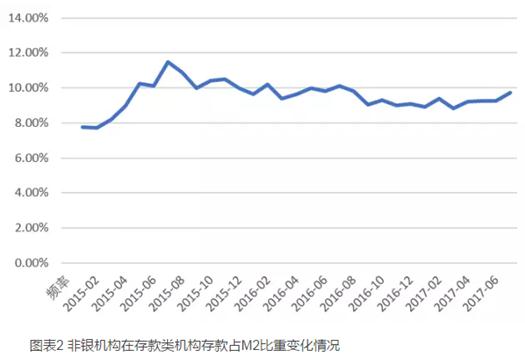 调整后的M2更加准确的反映社会体系中的流动性规模。2011年9月末,未调整的M2月为78.7万亿元,非存款类金融机构在存款类金融机构的存款为2.8万亿元,住房公积金中心存款余额为6992亿元。则调整后的M2为78.7+2.8+0.6992=82.2万亿元,较调整前增加4.45%。 如下图2所示,根据可得数据,自2015年以来,非银在存款类机构存款占M2比重常年在8%以上,对M2影响显著。