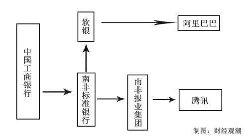 搞清楚了吗?简言之关系就是这样的:中国工商银行→南非标准银行→软银→阿里。