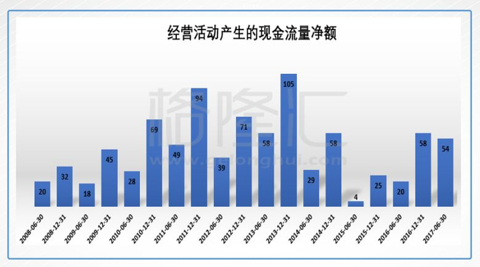 而永利皇宫在2017年上半年也发力狠狠地捞钱,2017年上半年经营活动现金流是2015年全年的两倍多。