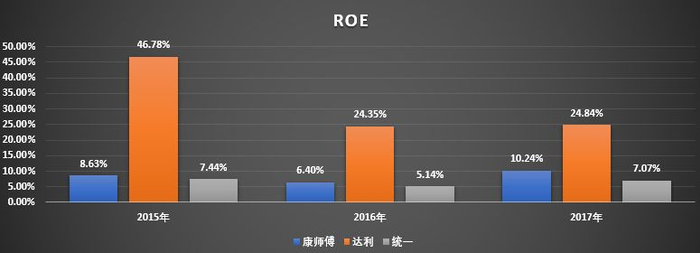 ROE近三年来都处于行业的顶尖水平,由于中国旺旺2017年全年数据还没有数来,所以下面这张图没有加入中国旺旺做对比,如果拿2016年的的数据来看的话,2016年中国旺旺ROE为27.96%,略高于达利食品。