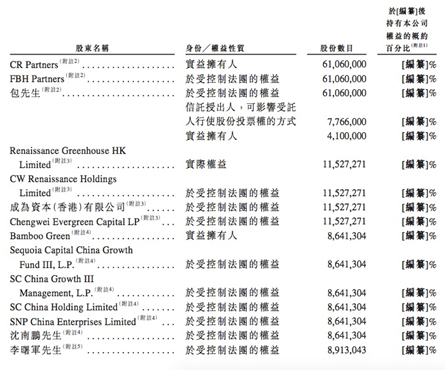 此外,沈南鹏控制的Bamboo Green持有864.1304万股,李曙军控制的两家公司合计持有391.3043万股。