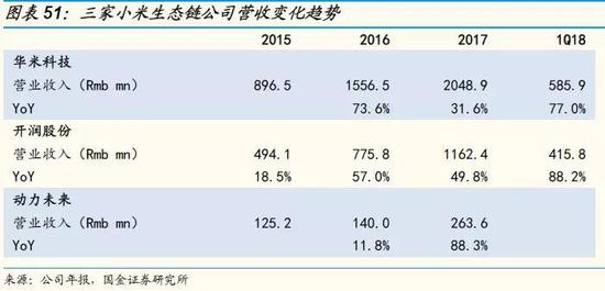 4)新的赢利点。在产品销售利润之外,投资收益是生态链模式重要的变现手段。小米2017年财报显示,来自于长期投资的公允价值变动收益达到63.5亿元,占公司经调整后营业利润的52.0%。而资产负债表中小米未变现的优先股投资于2017年底已经达到114.1亿元,其中主要是对超过90家生态链企业及相关支撑产业的投资。假设这些被投企业平均每年每家的估值增加1亿元,则小米每年可计入损益表的公允价值收益就有几十亿元。2018年华米在美国成功IPO(小米持有14.6%股权),揭开了生态链企业资本化的道路。我们认为,未来三年生态链将是小米主要的利润助推器之一。