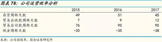 从业务的运营效率来说,小米的表现比较出色。现金周转天数呈加快态势,为公司创造了正向现金流。核心原因是对供应商有着很强的议价能力,贸易应付款控制较好,2017年底余额达到340.0亿元,占公司总生产成本的35.2%。同时,存货周转和贸易应收款的控制得力,周转天数大致稳定。