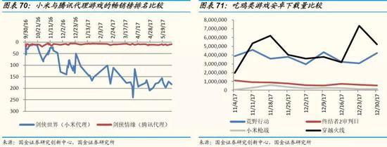 第一个短板是游戏。小米游戏2017年实现25.5亿元收入,同比增长仅19.3%,增速明显低于公司其他业务线。小米游戏业务主要分为分发和发行两大类,其中游戏分发主要通过小米应用商店和小米游戏中心实现,我们不再赘述。游戏研发主要通过持股的西山居(金山软件旗下)和朱雀网络等兄弟公司进行,小米自身并不涉及。