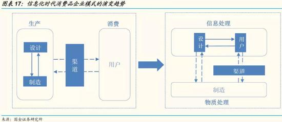 我们预判,未来的消费品产业很可能像20年前的电子产业一样,逐步出现专业分工的模式,正如半导体芯片产业从整合器件制造(IDM)走向无晶元(Fabless)和晶元代工(Foundry)的分工。核心的逻辑是,当中国步入信息化和数据化的社会之后,与消费者交互方式的革新影响到产品设计和动销流程的改变;制造资源、营销资源和渠道资源出现了再分配,旧巨头衰落,新巨头崛起。我们认为,专业分工模式将显著改善一体化模式下资源重复投入浪费和信息沟通效率低下的缺点,同时在“供应链---品牌---渠道”的不同环节下依然有机会成长出巨无霸企业,例如家电代工制造领域的“富士康”。