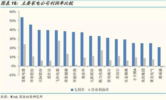 在渠道端,小家电从出厂到终端的加价率一般在3倍以上,相关上市公司的销售费用率普遍达10-30%,反映出代理商和零售渠道的强势地位。统计一下A股上市的30家主要家电企业,我们看到2017年平均的毛利率达到26.7%,但平均营业利润率只有7.8%。