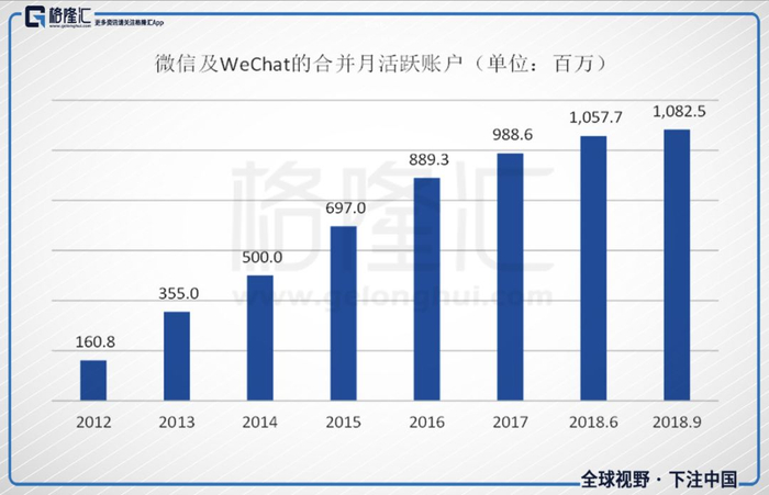 腾讯的流量源头主要是微信。第三季度,微信合并月活跃用户数为10.825亿,相比6月增长2.34%,仍然保持增长,这算一个好消息。