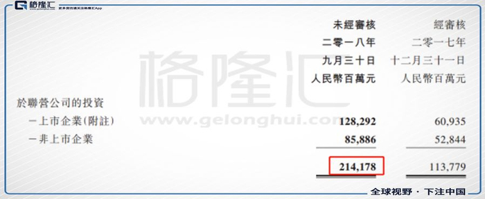 第三季度财报,腾讯投资的联营公司的股权公允价值为2142亿元,相比年初有大幅增长,这部分的增值来自拼多多、阅文集团、易鑫集团等等“新经济”公司上市的贡献。