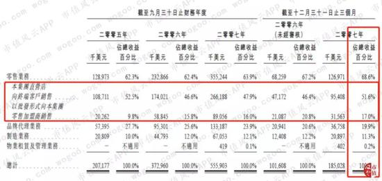 根据宝胜国际的招股书,于2007年12月31日,公司旗下共有1324家直营店,以及2232家零售加盟店,但是我们看到零售加盟商的销售收入占比仅为17%,而直营店的销售收入占比为51.6%,所以直营店才是公司的核心收入来源。