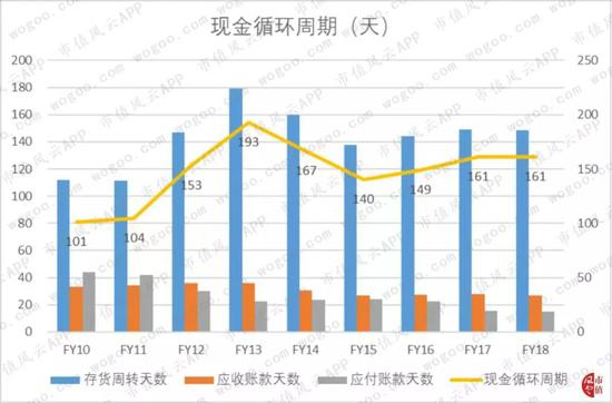 2018年,宝胜国际的现金循环周期为161天,近两年相对稳定。