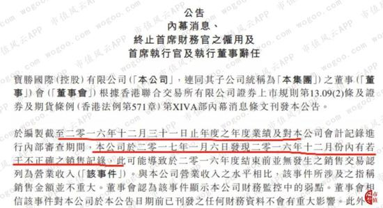 在2017年1月8日,公司发布公告称2016年12月部分销售记录存在错记现象,并且公司CEO关赫德和CFO陈国龙相继离职。紧接着,公司股价当天应声下跌22%收1.54港元,盘中最大跌幅超过37%。