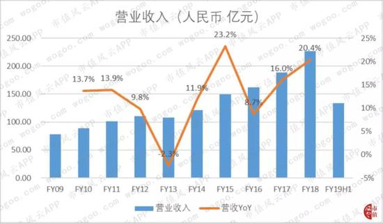 2018年,公司实现营业收入226.8亿元,同比增长20.4%,以2009年为基准,CAGR为12.6%。并且在2016-2018年期间,公司的营收增速逐年增长,从2016年的8.7%提升至2018年的20.4%,近年来公司业务处于加速增长的阶段。