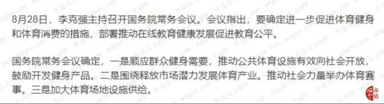 在刚结束的国务院常务会议中,也明确了要进一步促进体育健身和体育消费的措施。