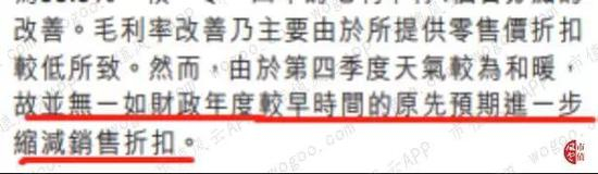 公司透过控制开支、优化员工成本及关闭盈利不佳的店面等方式,使得总体经营费用下降1.6个百分点至30.5%。费用开支主要用于举办活动、新概念店铺与店铺的升级、优化分销与数码渠道,以及激励销售团队等。