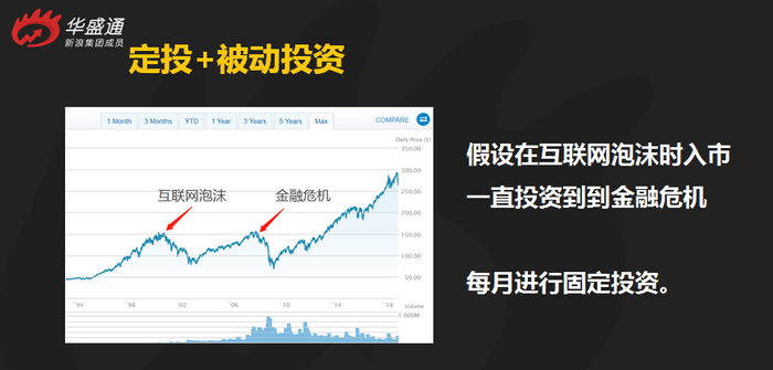 那我们假设你从互联网泡沫破裂前的高位进场,一直投资到金融危机,依然是每月傻瓜式固定投资。