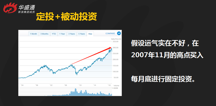 让我们以经典的定投标的---美股标普500指数为例,假如你很倒霉,在金融危机爆发前的最高点进场,也就是从2007年11月开始,每月底进行固定投资,那么到2018年10月,年化收益率会是多少呢?