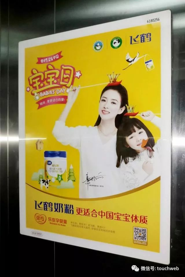 飞鹤还请了明星章子怡代言。最近两年,很多人在公寓楼,写字楼的电梯口经常看到听到章子怡在说:飞鹤奶粉-更适合中国宝宝体质。