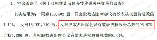 反转来了,中小股东们对转让议案几乎都投了反对票,占总数98.87%。