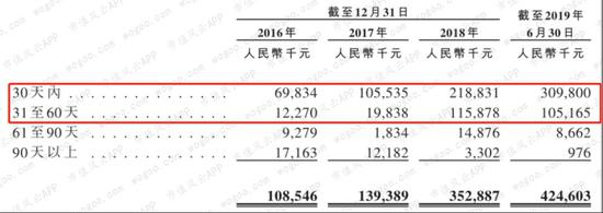 从账龄来看,60天以内的应收账款占比持续上升,截至2019年6月30日,账龄超过60日的应收账款仅占比2.3%。