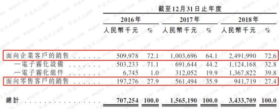 面向零售客户的产品是含有发热丝的开放式电子雾化器和电池模组的套件组合,该套件的售价每年都在下滑。