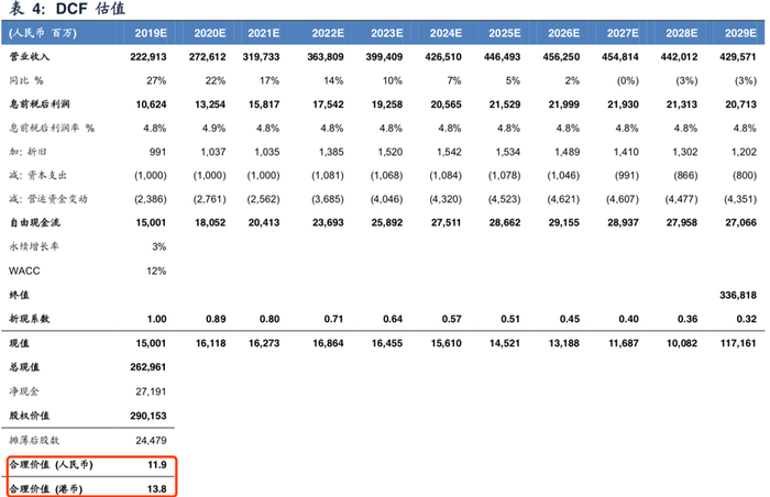 广发证券稍早前发布的研报,对小米集团采用了DCF估值法进行估值。基于WACC为12%,永续增长率为3%的假设,分析师计算出小米的每股合理价值为13.8港元,当前10.8港元的股价仍然有所低估。当然,DCF成功的关键取决于假设的准确度,细微参数的变动将很大程度上影响估值的准确程度。