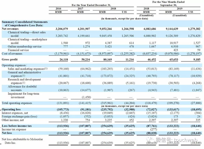 招股书显示,摩贝2016年、2017年、2018年营收分别为32.06亿元、42亿元、90.53亿元(约12.66亿美元);摩贝2019年前9个月营收为91.45亿元(约12.79亿美元),上年同期为60.84亿元。